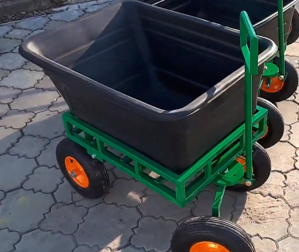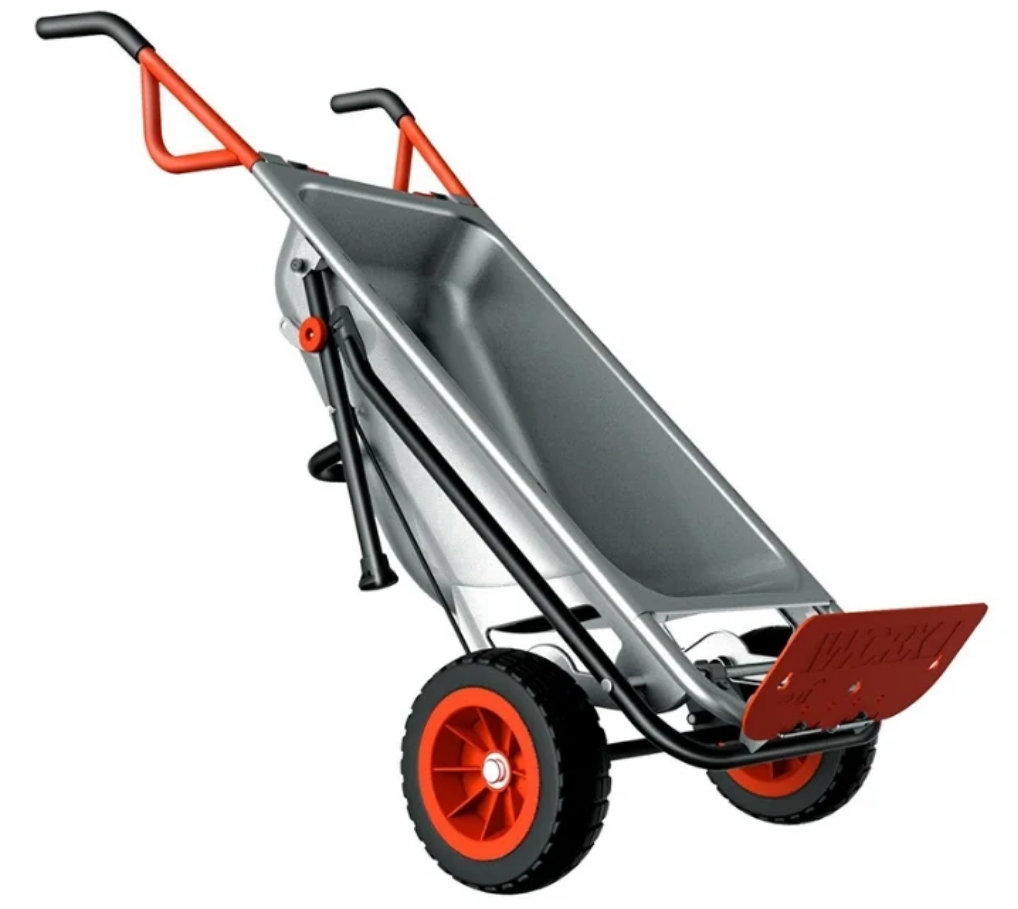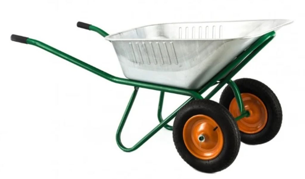 In 2nd place is a four-wheeled product for transporting materials through warehouse, production facilities, as well as intended for household, household needs. The wheelbarrow replaces manual labor, transporting goods faster, more efficiently, folding sides make loading more comfortable.