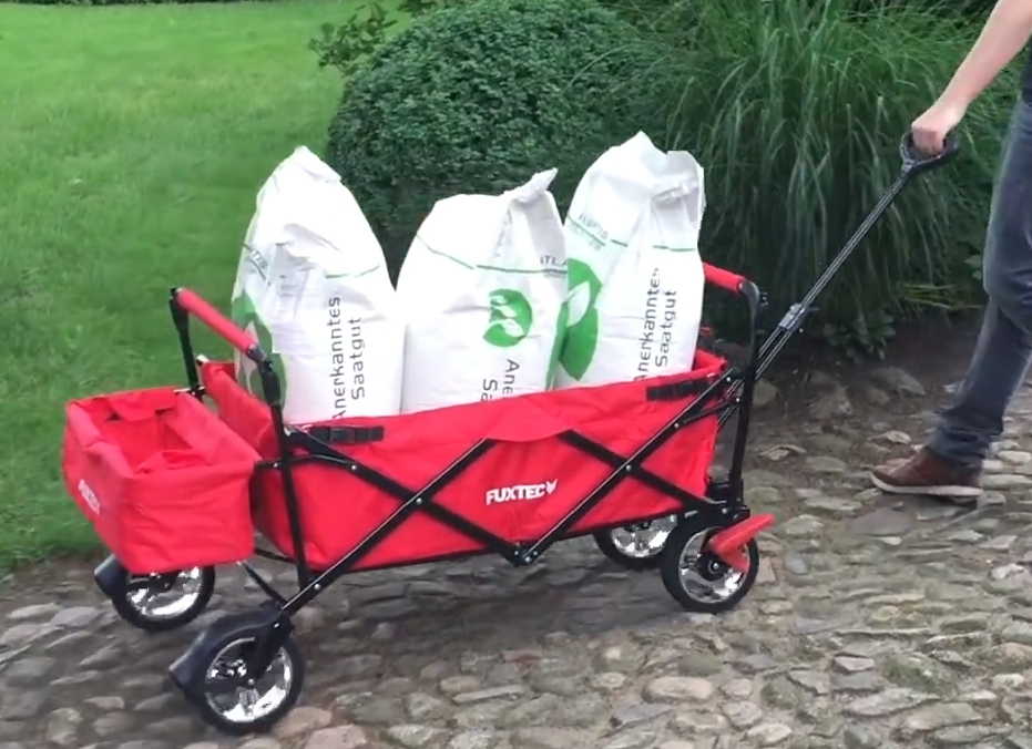 A protective cover is provided for transportation. These factors make the product from "FUXTEC" ideal for family trips to nature, work in the garden, transporting purchases from the car to the house or on the construction site.