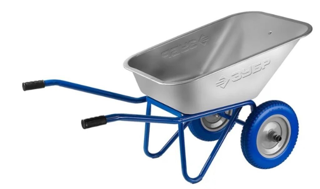 4th place - in a wheelbarrow from the ZUBR company, it is used for the transportation of goods at construction sites. The trolley has a strong structure, increased carrying capacity, maneuverability, and durability.