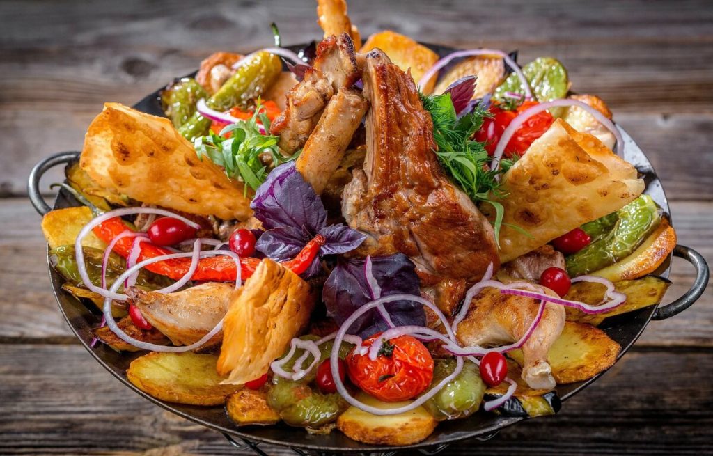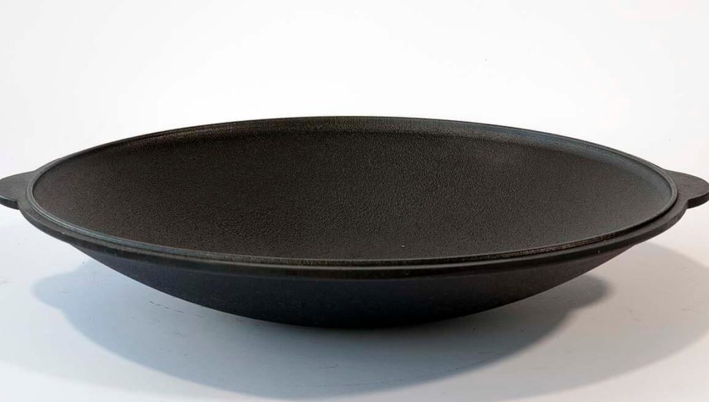 Externally, the product looks like a frying pan with a concave bottom. The dishes are used in several directions, as a container for cooking and frying meat. The curved part is often used for baking pita bread or flat cakes. It is not difficult to cook using saj; it is enough to set it on coals and fry any type of food. Teflon coating allows you to cook your favorite meals without the use of oil.