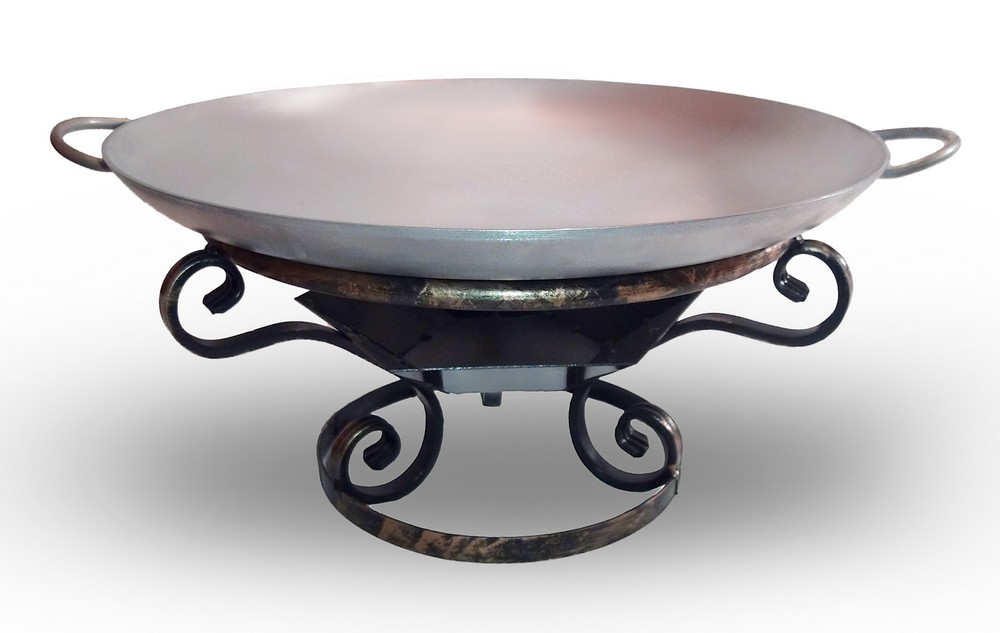 The unusual shape of the frying pan makes cooking enjoyable. Wavy edges and comfortable handles on the sides. The product can be used both for cooking dishes on fire and on ordinary stoves at home. The diameter of the product is 50 cm, so it can be used for preparing meals for a large company. Also, a frying pan is often used to serve prepared food to the table. However, for such purposes, you must additionally purchase a stand. The weight is 3 kg.