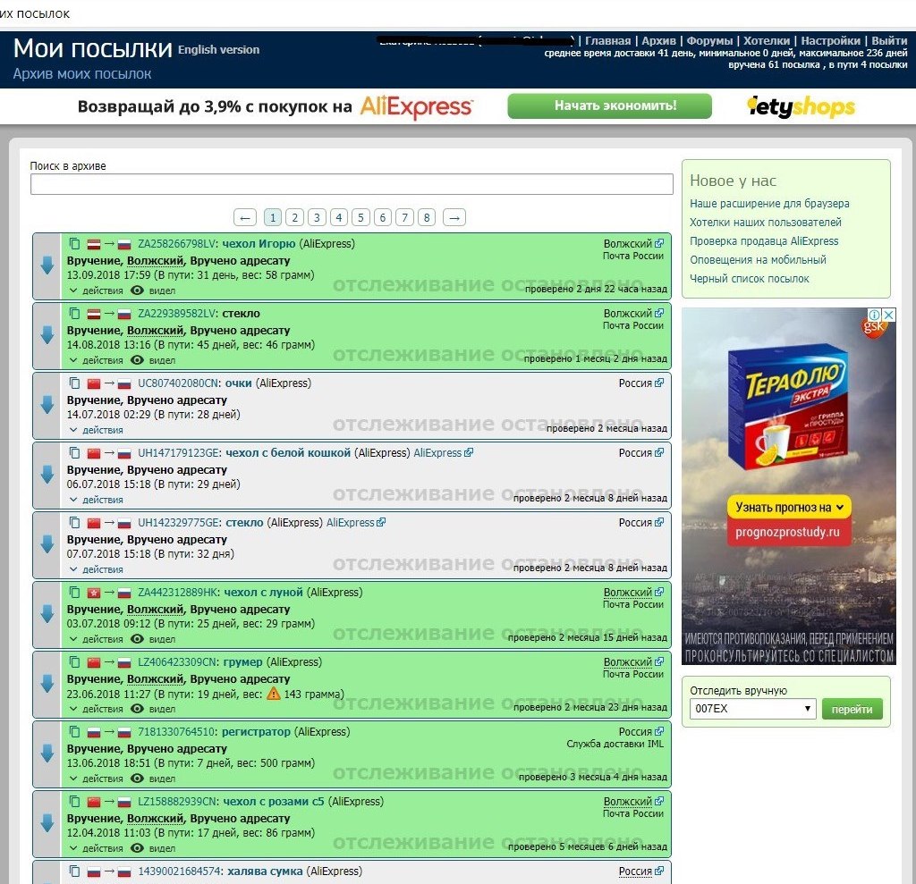 The tracking site is often used when ordering goods from the Aliexpress platform, as it automatically generates a purchase history after placing an order.