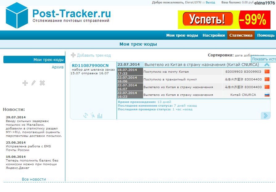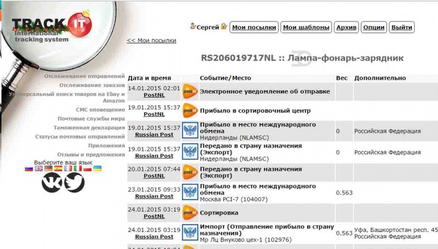 This site interacts with almost all post offices in the world. All necessary information is provided in the form of a table. If you want to get a more accurate summary, you just need to click on the line and read the information about the movement of the purchase. After registering on the site, you can receive information about the shipment and the final date of receipt of the goods by e-mail.