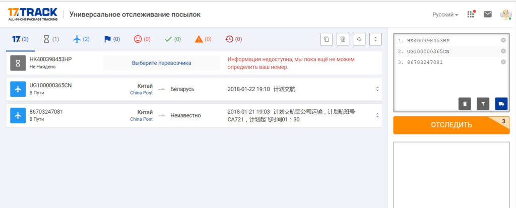 This site will be the perfect solution for shopaholics who shop in online stores. A special feature is the display of information immediately after the registration of postal cargo. Several track numbers can be displayed at the same time.The user will be able, using manual configuration, to monitor the movement not only in China, but also in other countries.