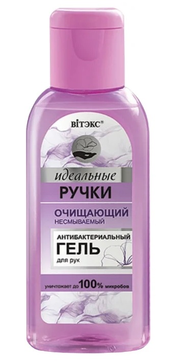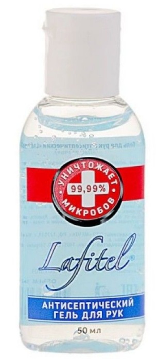 Inexpensive domestic gel in a bottle with a 50 ml dispenser contains 68% isopropyl alcohol, water, glycerin, PEG-40 hydrogenated castor oil, SC-CO2 extract of Aloe Vera and other substances that quickly and effectively disinfect hands, provide an antimicrobial field that acts several hours. An irreplaceable helper where there is no soap and water. Simply apply to skin and dries instantly.