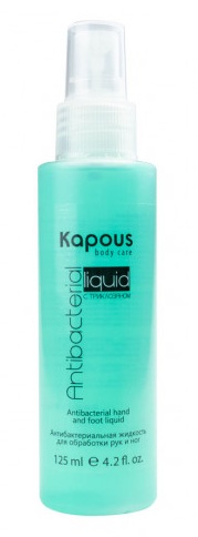 A versatile liquid that can be used not only for hands, but also for feet. It spreads over the skin by spraying (it takes a few seconds until it dries completely). The product has an antibacterial effect, does not require subsequent rinsing with water, does not have a negative effect on the skin, perfectly neutralizes pathogenic bacteria.