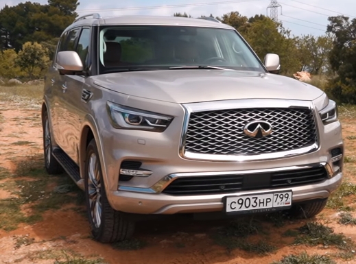 Infinity is confident in the clarity of the lines of its body. Standard 5.6 liters. the powerful V8 has a fuel efficiency of 400 hp. from. and a torque of 560 N / m. Tows 3900 kg, takes large luggage.