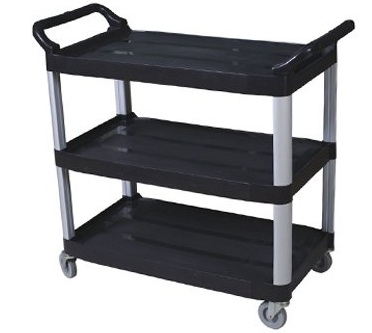 For catering establishments, trolleys are used to deliver trays and dishes.