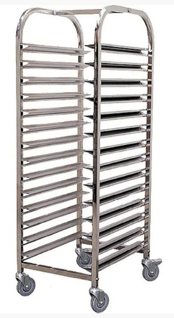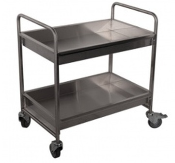 A device with two shelves on wheels, each of which has its own brake. The frame is made of corrosion-resistant food grade steel. Mirror working blade (polishing). High sides ensure safe transportation of dishes. Suitable for cafes, canteens, restaurants.