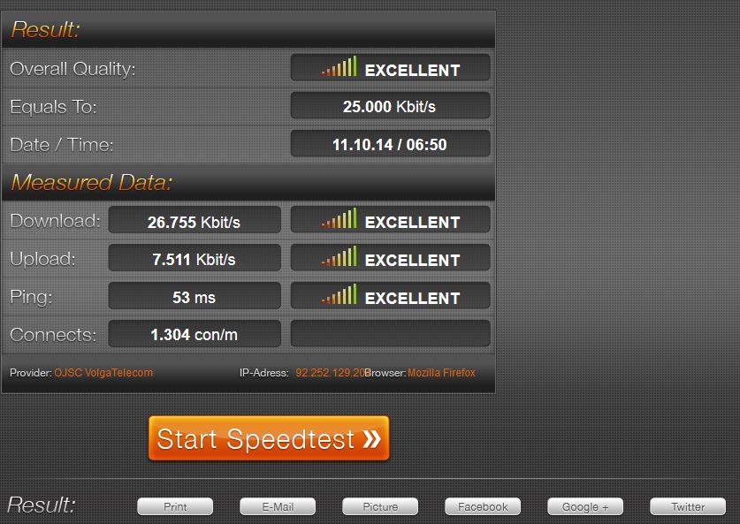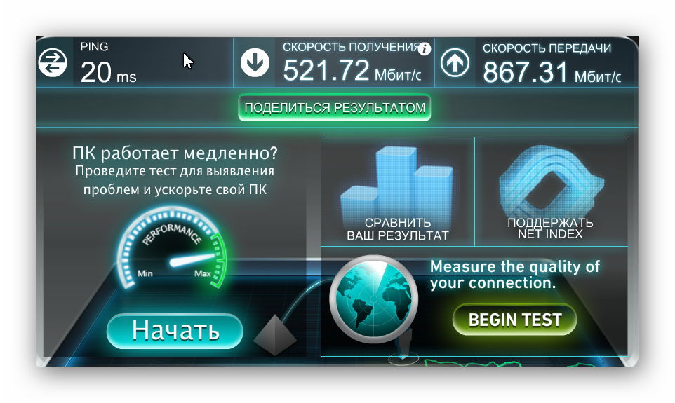 One of the best speed testing services. To work, you need to go to the site and pass the test, which implies sending a certain amount of data and, accordingly, acceptance. The final result is based on these indicators.