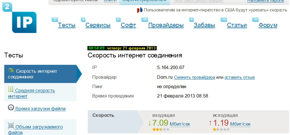 Site address https://2ip.ru/speed/