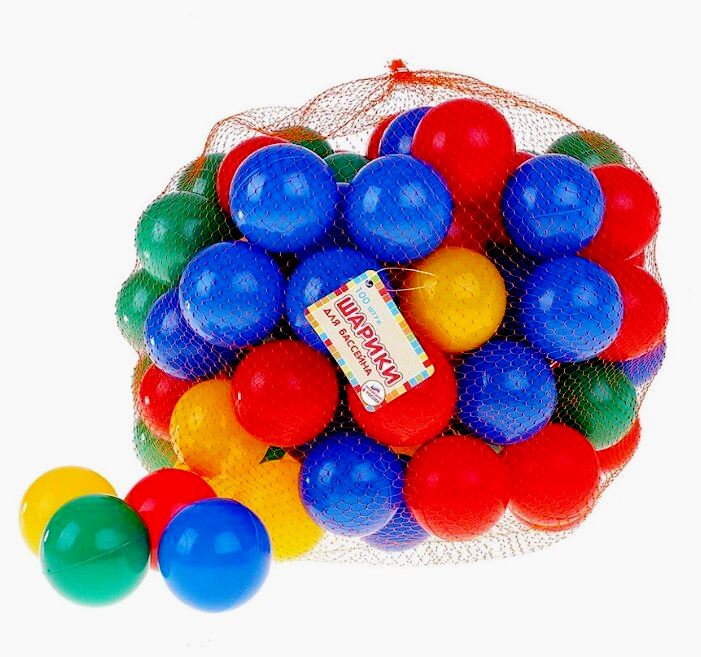 The diameter of quality balls is 6.5 cm. Such products should not be used in pools with small children, who can easily put them in their mouths. Made from high quality material. The set includes balls of different colors, which will appeal to children of any age. The seams are straight and smooth, making them safe to use. The popular model cannot belong to the budget category, since there are sets on the market that are more profitable in price.
