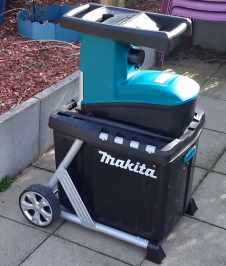 The Makita UD2500 shredder is used for processing wet weeds, dry plants, freshly cut and dry branches of different density. The maximum diameter of the material to be crushed should not exceed 4.5 cm. A rigid container with inspection windows is provided for the crushed particles. They will allow you to control the level of fullness in the process. There is a locking lever to securely fix the tank.