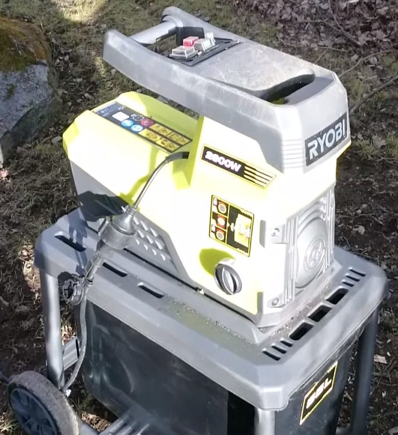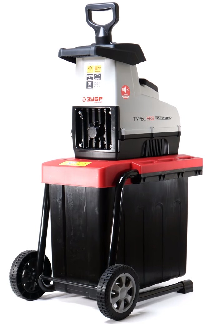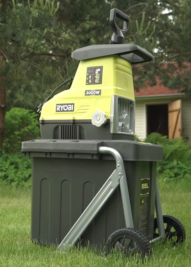 For collection of crushed material in this offered model there is a special container with a capacity of 55 l. The advantage of the device is the presence of a reverse, which protects it from blocking. Customers write about the excellent performance of the unit, both with freshly cut and dry branches. They also highlight the high build quality: plastic and metal were used for the manufacture. During operation, the noise level of the RYOBI RSH3045U shredder is 96 dB. On average, the price of this model is 22,560 rubles.