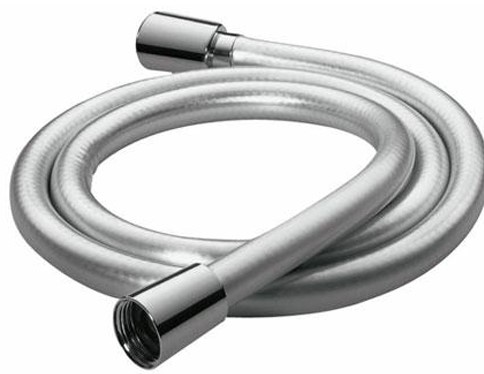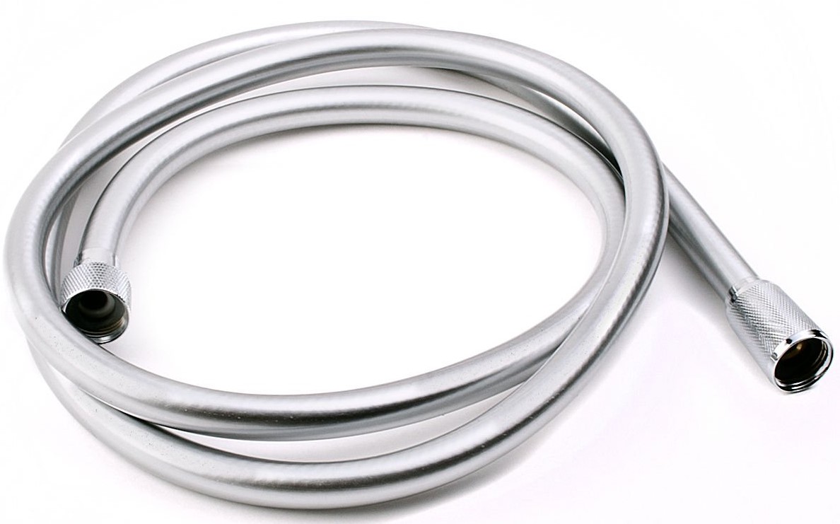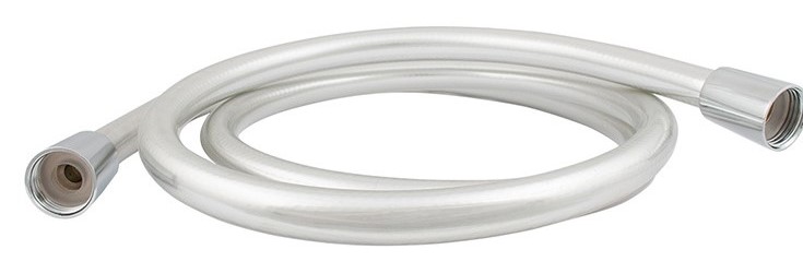 Silverflex 28388000 made of plastic. The factory surface is smooth, does not scratch the acrylic bath. On the side of the watering can - rotating cone (Anti-Twist), turns when tangled. Standard connection - suitable for any mixer. Length - 1.75 m
