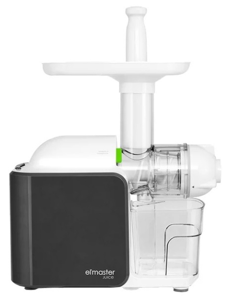 Juicer with two containers for sorting juice and cake. It is equipped with a variety of attachments and additional devices that allow you to quickly and comfortably prepare the desired drink or food.