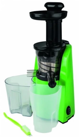 The device has an original design. Green plastic housing. Mechanical control. The legs are rubberized and adhere well to the table surface. From the systems there is a direct supply of juice and "drop-stop". The presence of a gentle mode prevents the oxidation of products. This model works at low speeds and retains useful trace elements up to 85%.