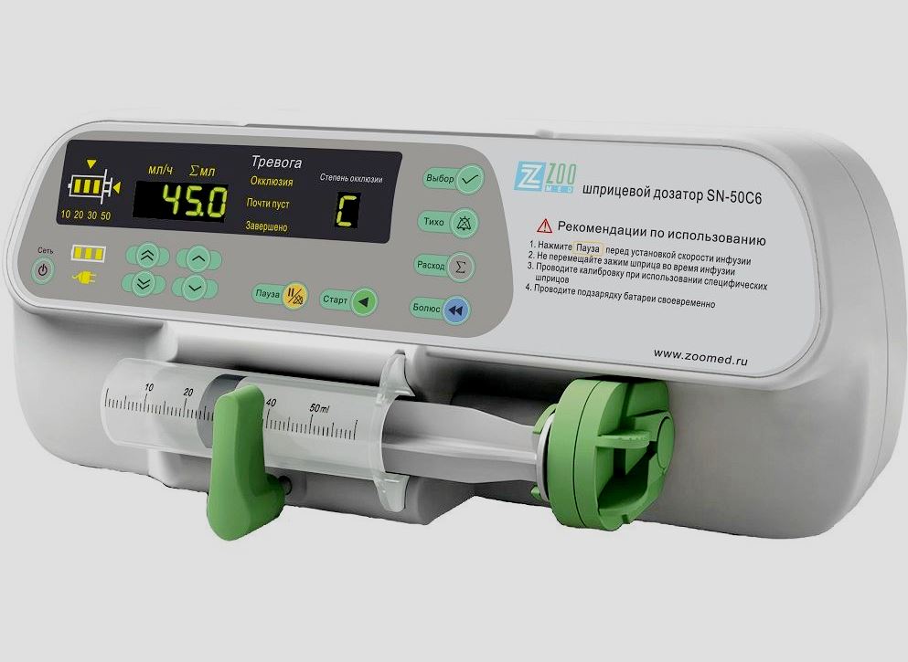 Often in medical practice, a situation arises when it is necessary for the patient to inject the drug in minimal doses for a long time. To exclude inaccurate actions of medical personnel and to optimize the work of specialists of a medical institution, special devices are purchased - syringe dispensers, which belong to the category of high-precision medical equipment that ensures the supply of the patient with the necessary drugs in a strictly established amount.