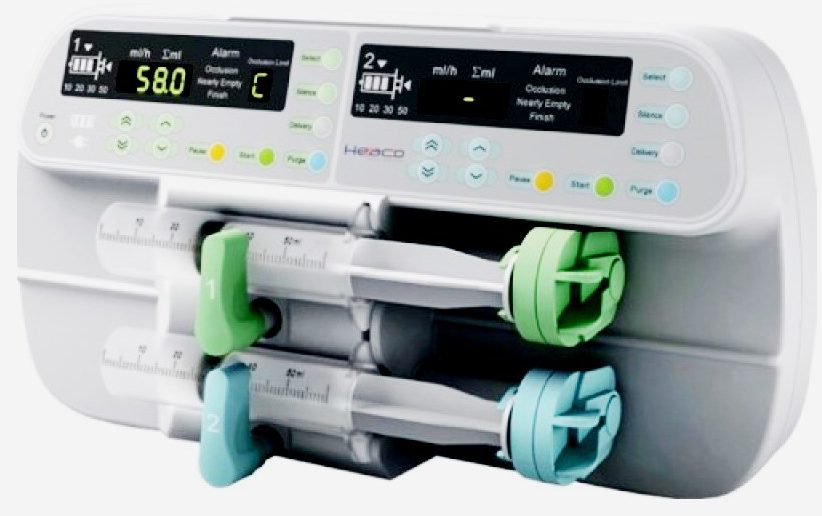 The device starts to work on its own at the programmed time, with the introduction of a person's weight, it will be able to determine the required dosage. Models are available that allow you to enter several drugs at once, as well as their combination. Today, two-syringe pumps are available, which are equipped with two self-contained syringe pumps, making it possible to inject both solutions with personalized infusion parameters.