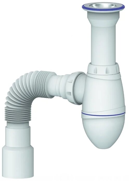 They are made of plastic folded (corrugated) pipe, which bends at the desired angle, an angle is formed - a water seal. The bend is fixed with adhesive tape (scotch tape), a special plastic clamp. The rest of the pipe can be adjusted. The budget option, suitable for non-standard sinks, requires a small space, installation, and is easy to assemble.