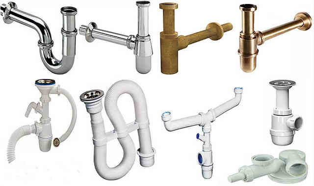 Siphons are used in different rooms - kitchen, bathroom, shower. They differ in structure, material, additional functions (overlapping drainage water).