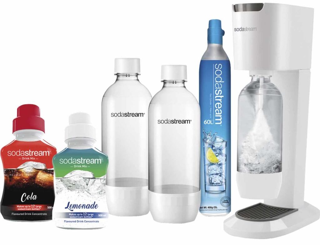 It is very popular due to its affordability, compactness and practicality. External resemblance to a reusable liter bottle with a hermetically sealed lid where a gas cylinder is inserted. The set contains 5 disposable cylinders, and additional and inexpensive ones can be bought at any online store. A simple device without complex add-on options that allows you to enjoy the preparation of water with bouncing bubbles in just a few minutes.