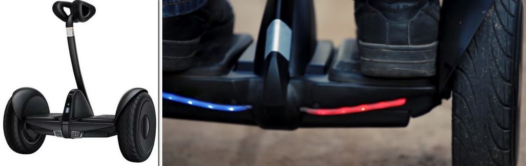 Segway folding type, easily disassembled (handle is removed), allowing you to store and transport equipment without taking up a large area. It is used for commuting (in big cities), walking and amateur driving. It quickly picks up speed, has a powerful engine and a voluminous battery, which allows you to wind up a large mileage without recharging. The body is made of durable alloy. The design is equipped with a large display on the steering wheel, "headlights" and various functions that are configured via the gadget app. On the inside, the wheels have LED illumination along the rim, the handle bar is also partially illuminated.