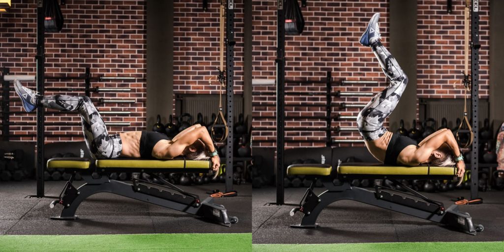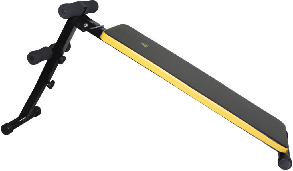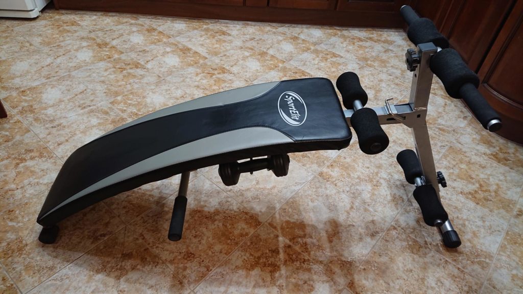 This projectile is lowered to the floor with one side. By adjusting, the head can be positioned lower and the legs higher. This position strengthens the chest muscles well. Abdominal muscle training is also good. However, in this case, the projectile must be equipped with special rollers that fix the feet.