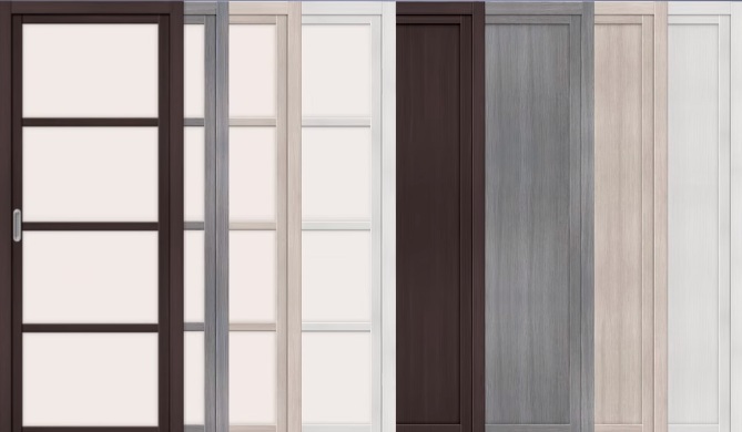 "Blind" doors from the "Bravo" brand are installed everywhere: living rooms, bedrooms and bathrooms. The absence of glass makes this possible. Small size canvas saves space, suitable for the smallest rooms. They differ in sound insulation, soft running of the structure. The solid pine body is lined with eco-veneer, making it environmentally friendly and similar to natural wood. The similarities are added by a decorative film coating that imitates an array. Model in four colors: cappuccino; wenge; Gray; Bianco.