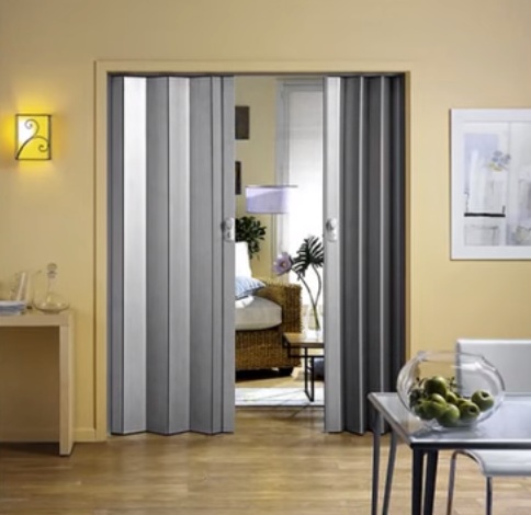 Design solutions show that the sliding accordion looks great between the kitchen and the dining room, as well as an acceptable solution for the wardrobe. The “book” is chosen for a library or study room.