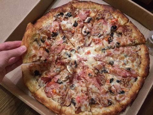 Free delivery in the city. The stated time is one hour. If the courier does not arrive during this time, the client gets pizza for free. There is also a pickup.