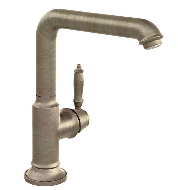 The single-lever mixer is designed in a vintage style with a swiveling L-shaped gander. The removable aerator does not become clogged with limescale. made of silicone.