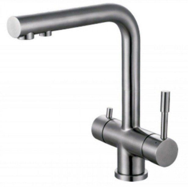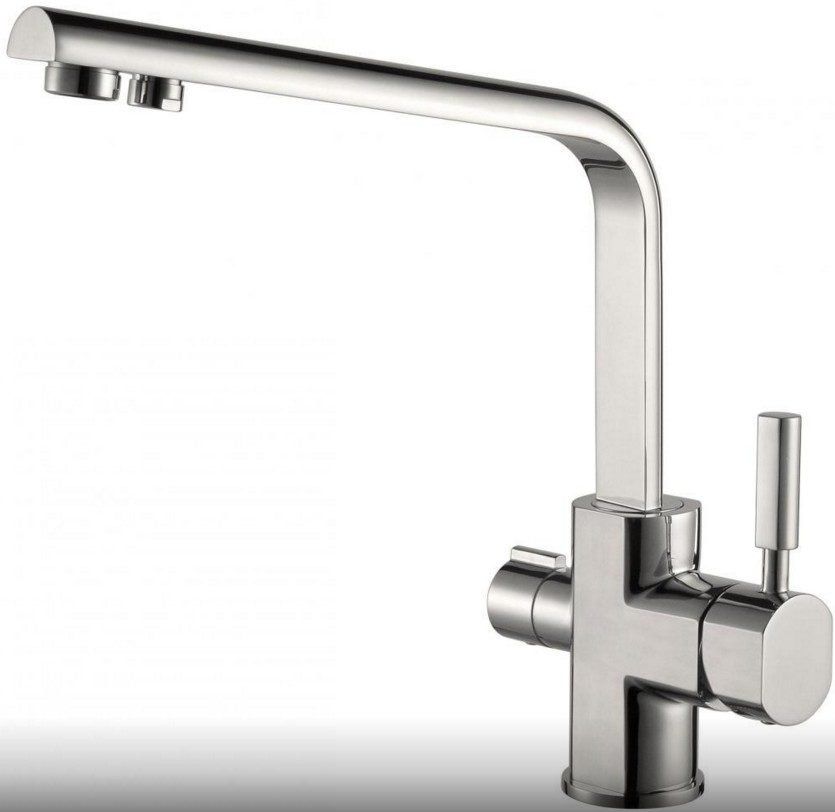 Mixer with L-shaped gander with the ability to connect a drinking filter. In terms of functionality, it is similar to the previous model. The main difference is the presence of a separate spout for filtered water.