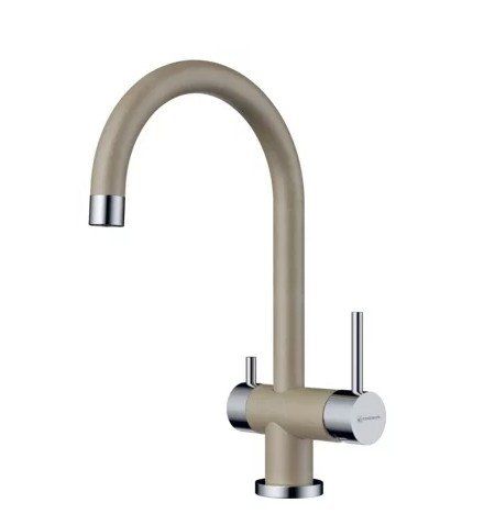 The austere contours of the mixer blend harmoniously with a modern kitchen. The model is presented in eight colors. The faucet has a separate filter connection and spout.