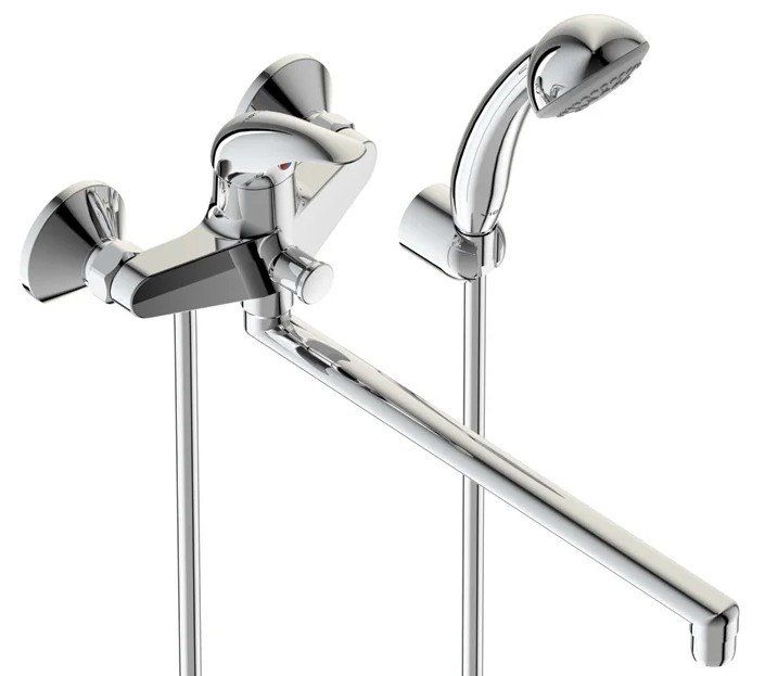 Single lever bath mixer with shower with long swivel spout. Convenient to operate. Can be used both in the bathtub and in the sink. The hand shower switch allows it to be turned on at low water pressure. The package includes a water flow limiter, which allows you to save water without losing the quality of water procedures.