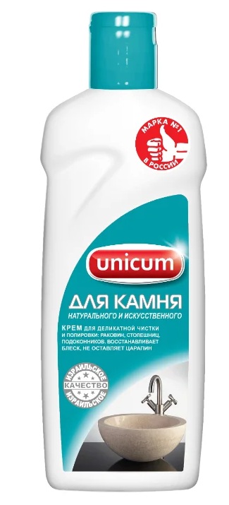 The product is suitable for removing stains from any stone and glass-ceramic surfaces. Packaging - a white plastic bottle with a blue cap. Quickly, gently affects the coating (no scratches), perfectly polishes, restores its shine.
