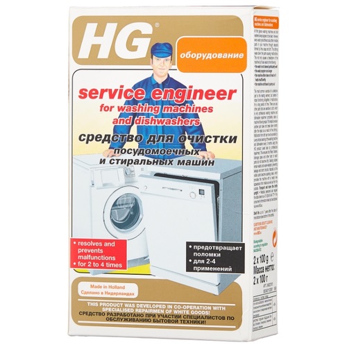 The drug is made in Italy. Supplied in powder form. The package contains two 50 g sachets. Designed for two uses. The recommended processing frequency is once every six months, so the packaging will last for a year. The product effectively fights limescale and grease in the machine and in the drain hoses.