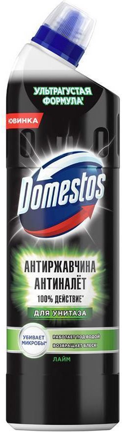 One of the most popular toilet cleaning agents. Domestos is rightfully considered one of the best manufacturers of household chemicals. Due to its unique composition, the gel is able to remove not only bacteria and small dirt, but also to cope with limescale. The special formula works even under water to remove rust. The gel changes color upon contact with it. The thick consistency allows the liquid to be retained for a long time at the application site and increases the effect produced.