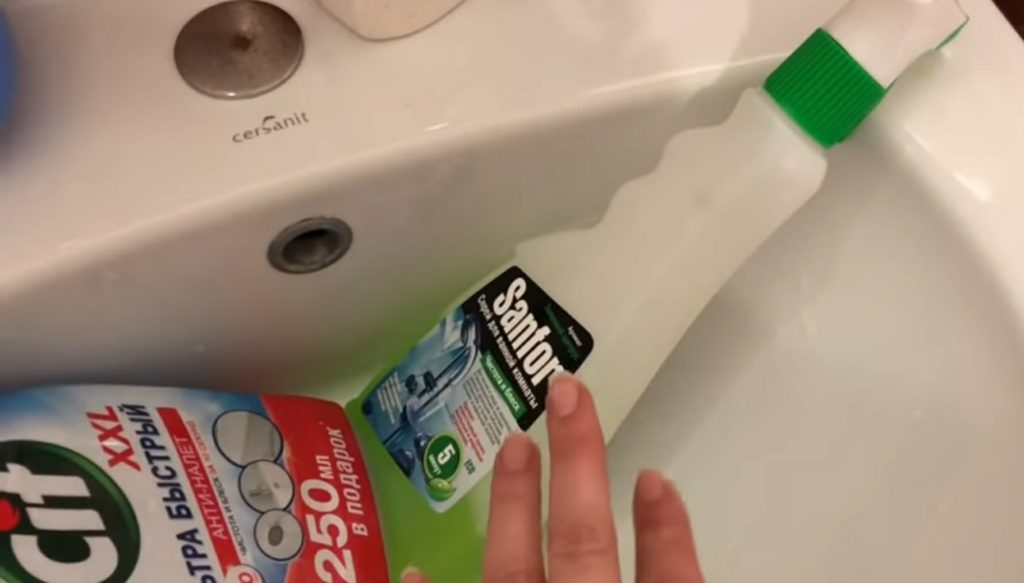 The main components of an effective liquid for sinks and toilets are acids, which efficiently and permanently remove various stains and microorganisms. The average price is lower than foreign analogues, but the consistency of the liquid does not allow using the product sparingly. The product is manufactured by the Stupino Chemical Plant. The active substances of the product are highly volatile, and their vapors have a negative effect on the respiratory tract and may cause allergic reactions.Therefore, cleaning is carried out using protective equipment.