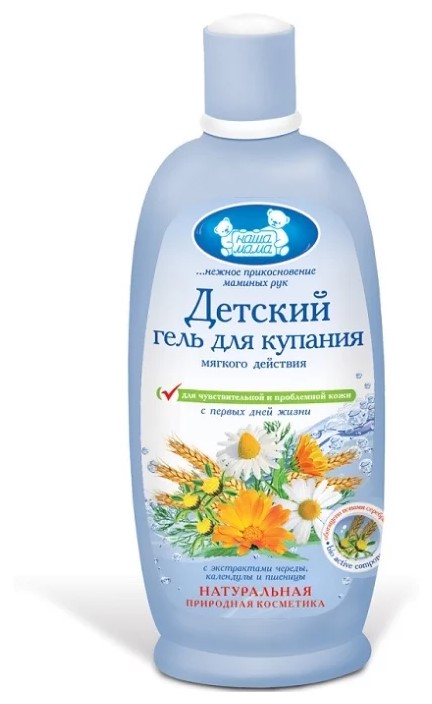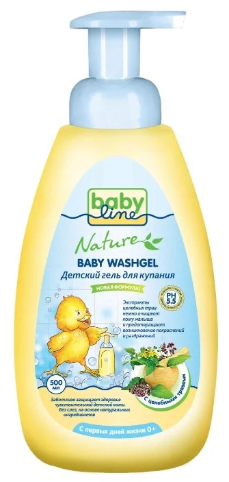 gel cream for baby bathing 0+, with linden and chamomile extracts, has an anti-inflammatory effect;