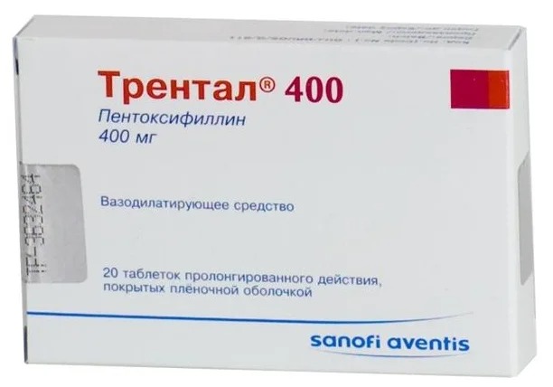 Trental is used for poor circulation in the choroid and retina of the eyes, cerebrovascular accidents, degenerative changes, diabetic genesis, otosclerosis, occlusive disease and trophic disorders. It is also often used to treat chronic peripheral circulatory disorders in the elderly. Packages are available in 400 (400 mg), 60 (100 mg) and 20 (400 mg) tablets. You can also purchase a concentrate for self-preparation of the solution. The average price of Trental is 496 rubles for 60 tablets.