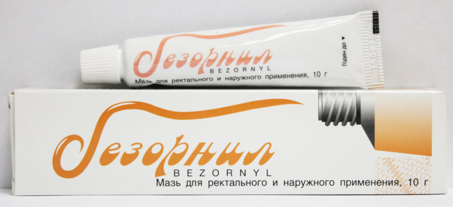 Bezornil is a unique ointment with a natural composition. The main active ingredients are borneol, pearls, calamine and artificial musk. Borneol (bornean camphor) acts as an antiseptic. It sanitizes damaged tissues, eliminates itching and burning, and also improves blood flow in the affected vessels. Pearls have established themselves as a good hemostatic agent, which also prevents blood clots from forming. Calamine (zinc carbonate) fights puffiness and inflammation. Bezornil is prescribed for external and internal hemorrhoids. With its chronic and acute form, even with bleeding. Also, cracks and eczema are treated with this ointment.Available in 2 or 10 g tube with applicator.