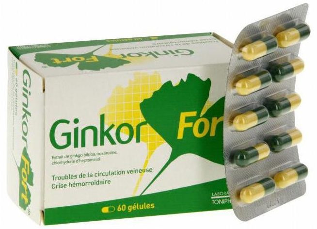 Ginkor Fort is a drug with venotonic and angioprotective action. The composition includes troxerutin, ginkgo biloba extract and heptaminol hydrochloride and auxiliary components. All of these substances help to increase the tone of the veins, to reduce the permeability of the capillaries by strengthening their walls. Thus, the drug normalizes blood flow in hemorrhoidal formations, which gradually decrease and dissolve with the drug intake. Ginkor Fort is effective both in the initial stages and in exacerbations and chronic forms. It looks like capsules. The package contains 3 blisters of 10 capsules.