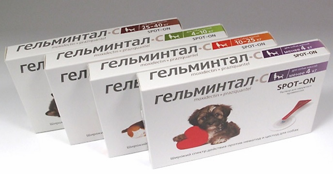 These drops are available for dogs of different sizes and are sold in different packages depending on the weight of the pet. They also need to be applied to the dog's blind spot to prevent licking. The active ingredients, praziquantel and moxidectin, will help not only against worms, but also against ticks and fleas.