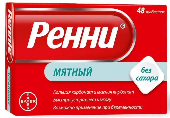 An antacid containing calcium and magnesium carbonate. It is they who neutralize the action of hydrochloric acid and relieve the burning sensation under the stomach, in the esophagus and throat. Release form - tablets for chewing or resorption. Should be taken 1-2 pieces 4-6 times a day.
