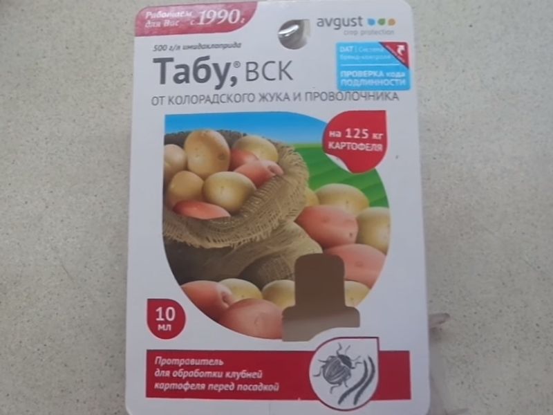 The manufacturer promises that "Tabu" has its effect within 45-50 days. This is most favorable during initial growth, when the influence of the Colorado potato beetle on the yield is most sensitive.