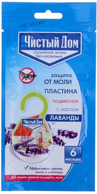 The plate is operated suspended (for this it is equipped with a special loop). Lavender oil and insecticides are used as impregnation. Valid for up to six months. With the help of this easy-to-use device, it will be possible to completely get rid of not only moths, but also a beetle - kozheed (no less harmful insect that destroys, as the name suggests, leather things in closets and closets).