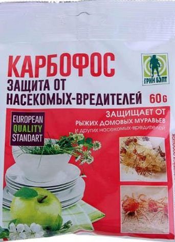 The only minus of karbofos is its caustic specific smell, which is why the agent is rarely used indoors. But for the processing of garden plots, industrial premises, this is the best option.