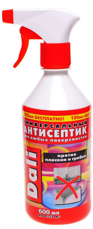 Russian universal preparation suitable for use on wood, concrete, brick and drywall surfaces. It can penetrate deep inside, even under a layer of plaster, which eliminates the need to remove it before starting work. The product does not contain chlorine, which makes it harmless to people prone to allergic reactions. "Dali" is quickly absorbed and does not spoil the appearance of materials.
