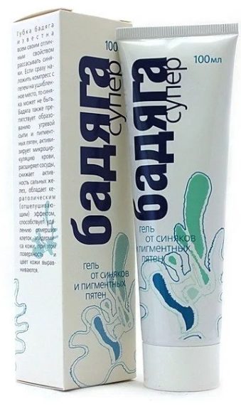 The drug for bruises and pigmentation is one of the most famous in Russia. Badiaga from the Skimed brand is produced in a volume of 50 g, in the form of a gel.
